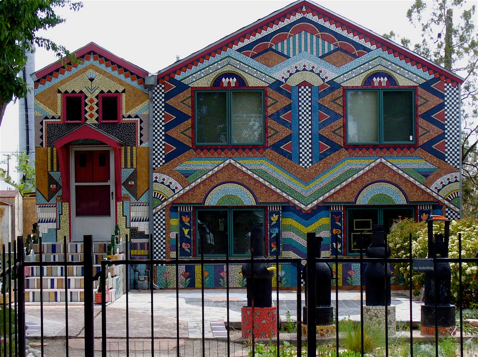 More recently, design in Albuquerque has become increasingly experimental.ย A great example is the tile house, shown below, by Beverly Magennis.ย She started this project in 1984, and it took her 11 years to complete. The details are amazingly intricate, so it isn’t surprising that it took so long to complete.ย It’s a beautiful home, and I love that the pattern is inspired by Albuquerque’s Native American roots.