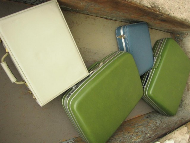 Joey and I found these lovely suitcases (pictured above) at Savers and The Salvation Army.ย They each cost less than $5, and after using a good disinfectant, and I am pleased to say that these little gems will be traveling the world with us.