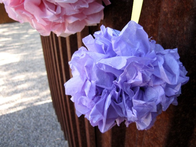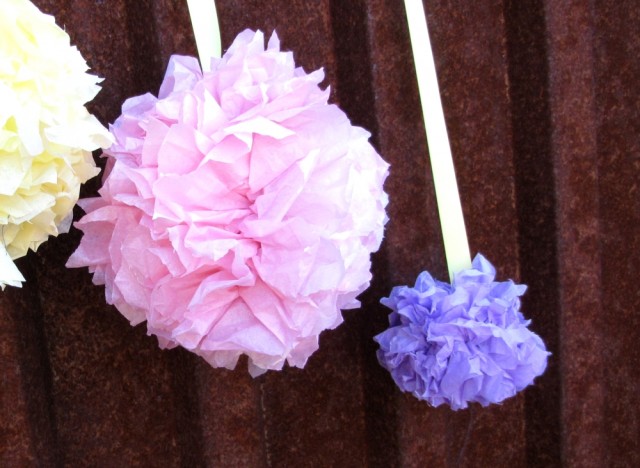 The other day, Apartment Therapy had a preview of Martha Stewart’s 2012 Macy’s collection.ย I fell in love with one of the photos that featured some really cool hanging pom poms.ย For some reason, the post was removed and I can’t find the photos ANYWHERE!ย Luckily, I had closely observed the pom poms before the photo was removed, and I tried to recreate them.ย I used tissue paper that I bought from the dollar store and made different sized pom poms.ย I’m too lazy to give instructions on how I made them, so if you just follow Nothing But Bonfires tutorial, which can be found here, you should be fine.ย Happy crafting!