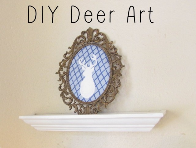 I’ve been doing a lot of home decor DIY lately.ย One of the easiest projects I did was this painted deer silhouette.ย I bought the cool vintage frame at Goodwill Outlet a long time ago, and I was never quite sure what to do with it… until the deer light bulb went off.ย Who doesn’t want a cute deer head silhouette in their house? Well, apparently Joey doesn’t, because he thought this was a silly idea.ย I pursued it nonetheless, and I am quite happy that I did.ย ย I used some thrifted bedsheets to create a patterned background, cut out a deer stencil, grabbed some paint, and voilร ! I’ll be posting more of my little DIY projects throughout the next couple weeks, so keep tuned in.