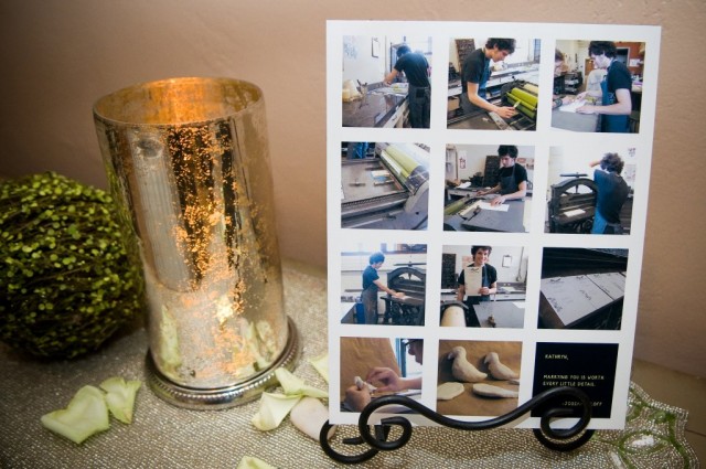 Joey made our bird themed wedding website, save the date cards, invitations, bridal shower invitations, table numbers, and cake toppers. He was a very busy groom. He also surprised me with the poster (below), which documents some of his hard work. The last frame says, “Kathryn, Marrying you is worth every little detail. ” Isn’t he the sweetest? You can see more of his wedding branding at his online portfolio.