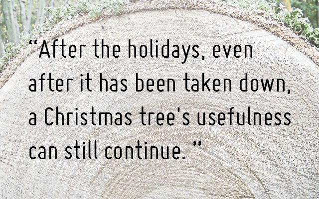 10. After the holidays, even after it has been taken down, a Christmas tree’s usefulness can still continue. The discarded tree can be erected in the yard adorned as a winter bird feeder, the trunk can be sawn into firewood and the boughs stripped and used as mulch.