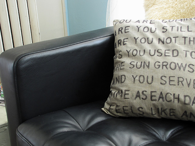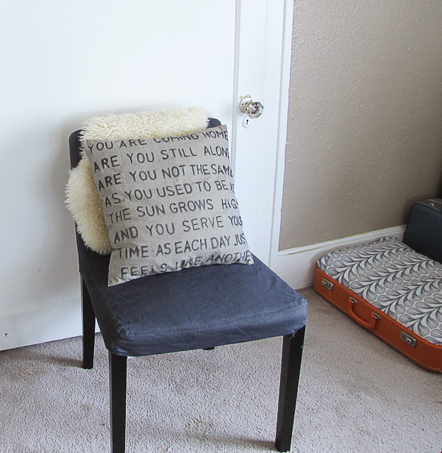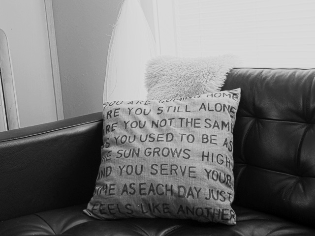 I chose to stencil the lyrics of one of my favorite songs, “Used to Be” by Beach House, on the pillow case. ย In case you hadn’t guessed, I’m kind of an obsessive Beach House fan.ย Teen Dream is one of my favorite albums of all time.