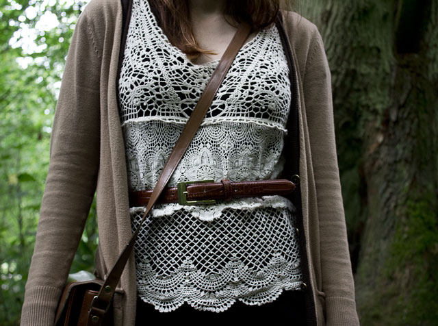 What I wore: dress (H&M), crochet top (American Eagle), sweater (Target), boots (Forever 21), belt (Goodwill),and purse (Goodwill Outlet)
