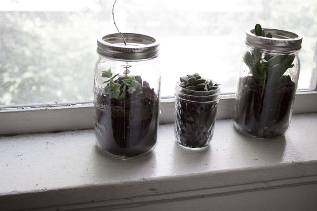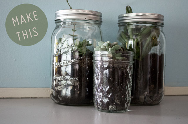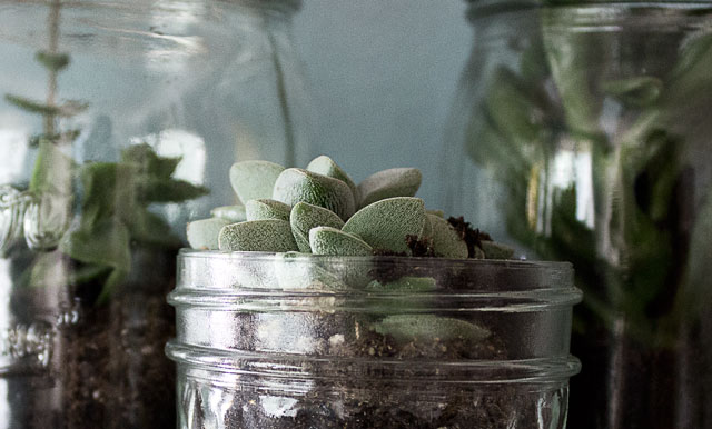 It is finally starting to feel like summer in Seattle, and I’ve decided to celebrate by getting my green thumb on.ย (For the record, I have a history of killing plants, but that doesn’t mean I can’t keep trying. ) Today’s tutorial is how to make succulent planters from old mason jars.