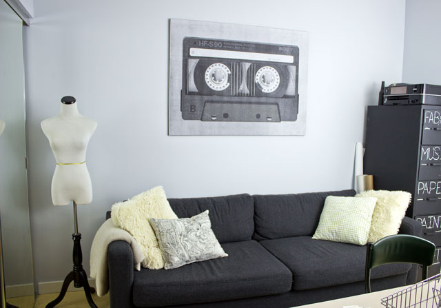 The third photo that we printed is of a cassette tape. It is hanging in our office/craft/music room. The reason we choose this image is because Joey thought it would be interesting to take a photo of a small object and enlarge it. I have to agree with him that it does look pretty cool.