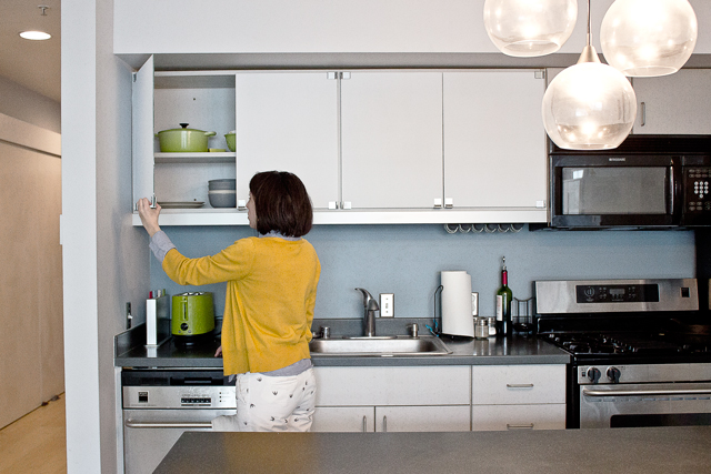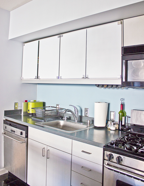 In a few weeks, I am going to evaluate the condition of the contact paper.ย At that point, we will either leave the paper on, or we will remove it and give the cabinets a fresh coat of paint.