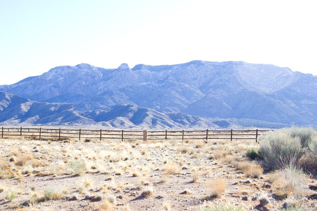 The picturesque mountains in the distance are the Sandias. At sunset, they turn pink, hence the name, which means watermelon in Spanish.