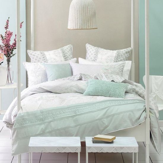 I’ve noticed that people in Seattle tend to dress in neutral colors.ย For instance, my office is usually full of people dressed in black, brown, grey, or white; but the other day one of my co-workers broke the mold and wore a mint green sweater.ย It looked fantastic, and I was actually quite inspired.ย That’s why I decided that mint should be April’s color of the month. I did some research and found out that mint is actually a pretty popular color in home design and decor.ย There are lots of great spaces featuring mint, and I’ve rounded up a few of my favorites.