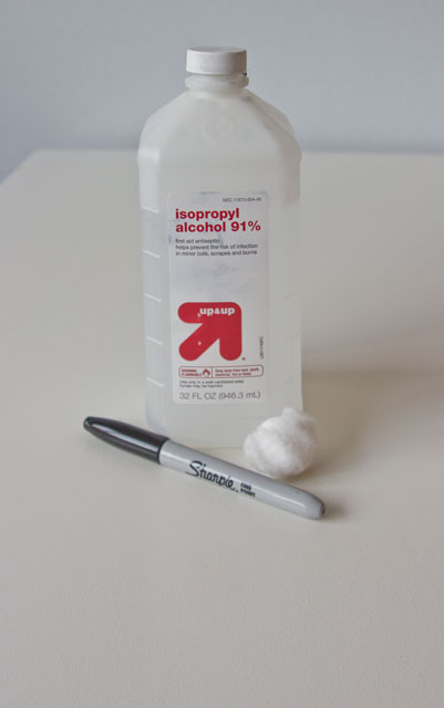 Well the internet was wrong.ย The rubbing alcohol didn’t erase the Sharpie, but instead diluted and spread the color like paint.