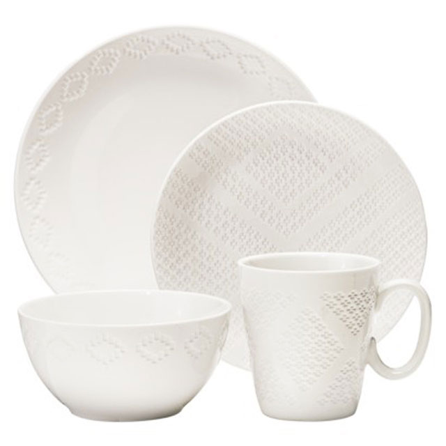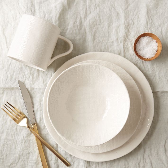 West Elm has a set of “linen textured” dinnerware that I am obsessed with! It sounds a little weird–I wouldn’t usually associate linen with dishes, but it totally works.ย A 16 piece dinnerware set sells for $128. To be honest, I’m not an expert on dinnerware, so that might be a decent price; however, it’s a little above my budget.ย Lucky for me, Target sells a very similar set by Nate Berkus for only $60. Can you tell from the photo below which is the Target version?