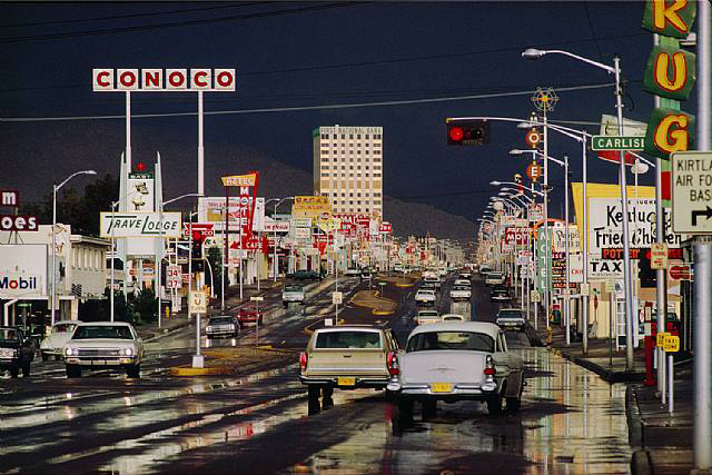 In the early to mid 1900s, Albuquerque’s architectural style evolved, in part due to the popularity of Route 66, which runs through the center of town.ย Neon lights, roadside motels, and diners became the norm along the city’s major streets.
