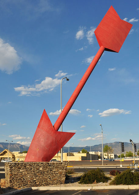 One of the strangest architectural relics from this time, is the large, red arrow sculpture that sits at a busy intersection.