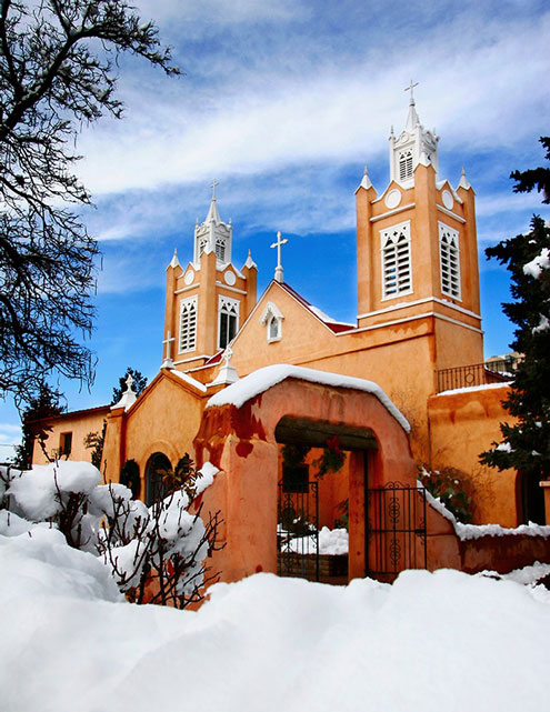 The most prevalent architectural style in Albuquerque is the Pueblo Revival Style.ย These buildings are typically made from adobe or stucco.ย They often have rounded corners, vigas (wood beams protruding through the exterior walls), and flat roofs.ย ย Some examples are shown below.