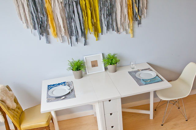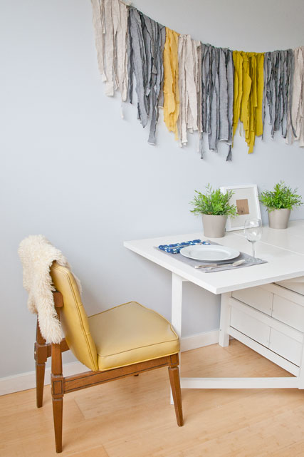 Also, the colors work well together. Oddly enough, the yellow chair actually matches the yellow in my textile wall hanging. I didn’t intend for that to happen, but it’s a happy coincidence.