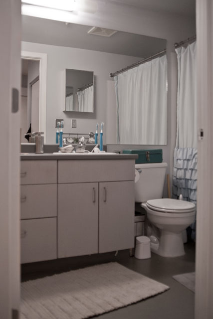 Joey and I are undertaking our biggest project to date – a renovation of our bathroom.ย I’ve been wanting to do it for a while. There isn’t anything terribly wrong with our current bathroom. It looks nice enough, but the real problem is functionality. It’s a very small bathroom with a HUGE vanity.ย When the door is open, it almost touches the drawers. I have to have the door closed if I want to open any drawers. It’s a real pain.