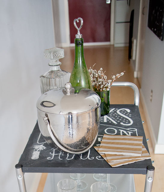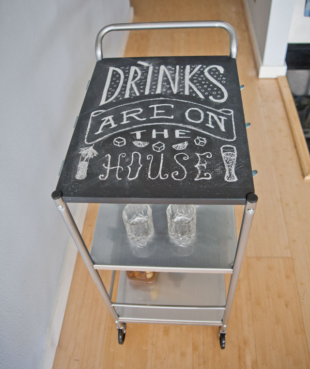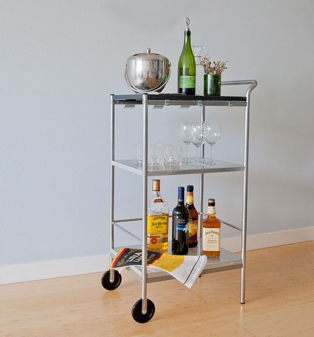 A while back, I showed a post about the bar cart that Joey and I revamped. We love it, and as it turns out, so do most of our friends.ย It gets a lot of compliments. So when some of our closest friends bought their very first house, we (or maybe just I….Joey didn’t really have a choice in the matter) decided that we had to make them a bar cart as a housewarming gift.ย But I wasn’t having luck finding a good frame at the thrift stores, so I had to take a different approach – IKEA!! I love Ikea, and it turns out their Bygel Utility Cart makes a pretty good bar cart. I saw some cool makeovers on Pinterest, so I decided to give it a shot.