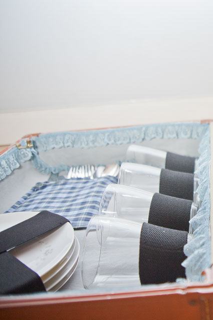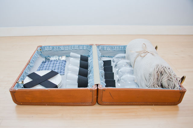Up until this weekend, the weather in Seattle has been abnormally spring-like.ย It’s been perfect picnic weather, so I was inspired to make a picnic suitcase.ย What’s a picnic suitcase, you ask?. Well it’s just what it sounds like, a picnic basket in a suitcase. I finally finished it this weekend and low and behold, the rain came back.ย ย Oh well, once the weather improves, I’ll be ready.