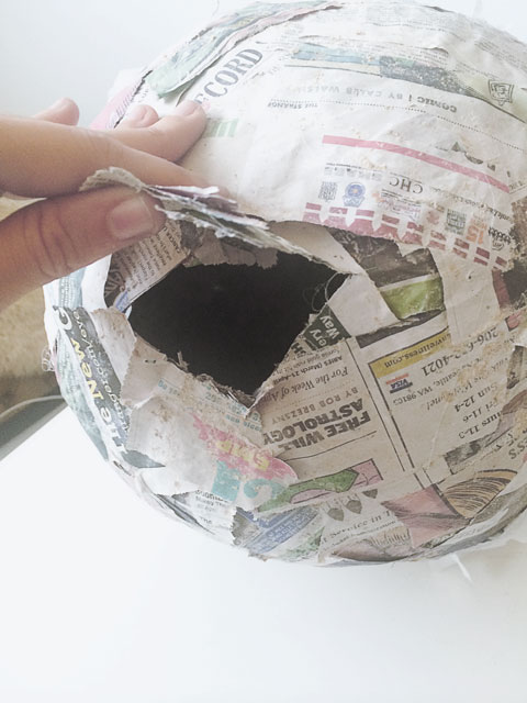 4. Add two more layers of paper mache to the balloon, letting each layer dry in between applications. I started my first layer at night and let it dry overnight. In the morning, I completed my second layer before going to work. When I got home from work, I finished the third and final layer.