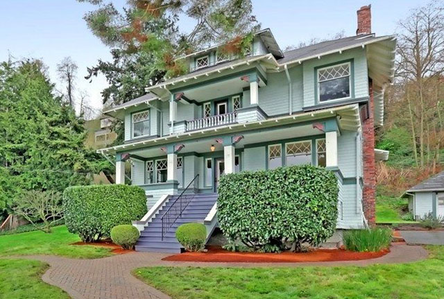 The next style that became very popular in Seattle is the Seattle Box.ย It’s basically the NW variant of the classic box style, which was popular throughout the US in the early 1900s. These homes are usually boxy, have a large porch with thick columns, and have extended bay windows on the second floor. They have low angled hipped roofs with dormer windows.