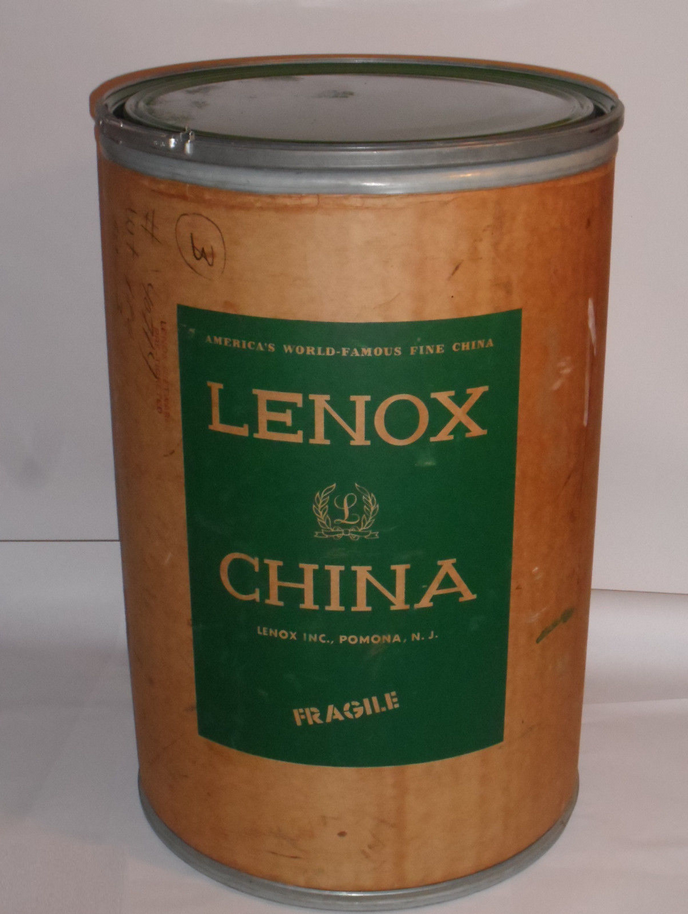 It’s true that one person’s junk is another’s person’s inspiration. Like when I found a vintage, 1950s shipping barrel at Goodwill Outlet. I thought it was very cool, but a little rough around the edges. Kathryn was skeptical of it’s potential, but I convinced her that I could transform it. I forgot to take a before picture of the barrel, but it’s the same one pictured below, which I found on an ebay listing selling this for $275. The barrel is printed with “Lenox Fine China” and is labeled as fibre drum. It’s about 34” tall and 22” diameter.