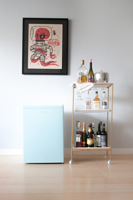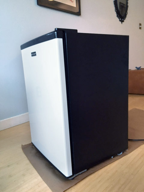 Today I’m going to share a mini fridge makeover that I recently completed.ย It all started because my coworkers and I wanted a communal fridge in our workspace, but were having trouble finding anything affordable.ย So I checked Craigslist and found a $35 Emerson fridge that was in good shape, but, as you can see from the photo below, not particularly attractive.