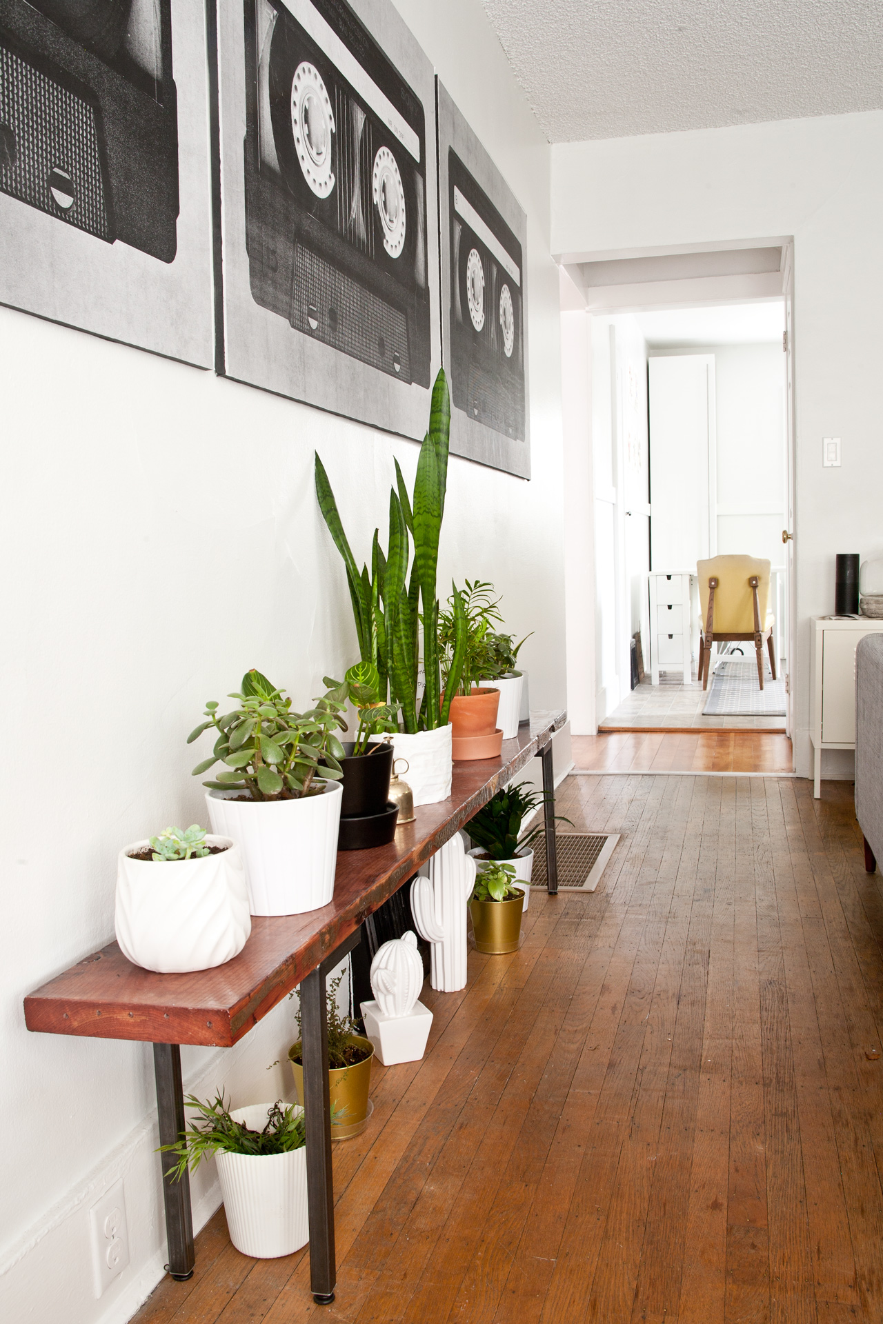 I seriously can’t get enough house plants. It’s an obsession. The problem is that I didn’t really have anywhere to put all my plants, so I came up with a creative solution – a plant bench. In reality, it’s just a regular bench that could be used in the future for a different purpose, but for now, it’s a functional perch for my plants.
