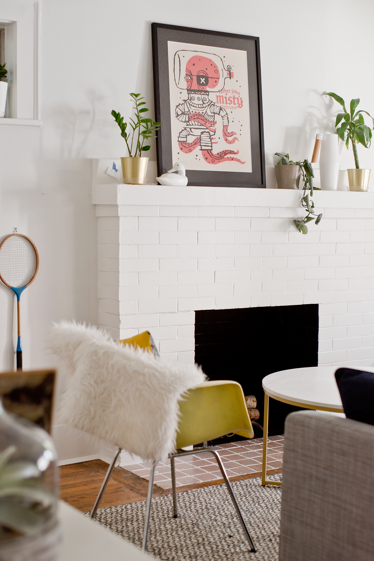 The framed poster above the fireplace is one of my favorites. It’s a Father John Misty print that we got ages ago. It was previously in the basement, but now it’s front and center – one of the first things you see when you walk into our house.