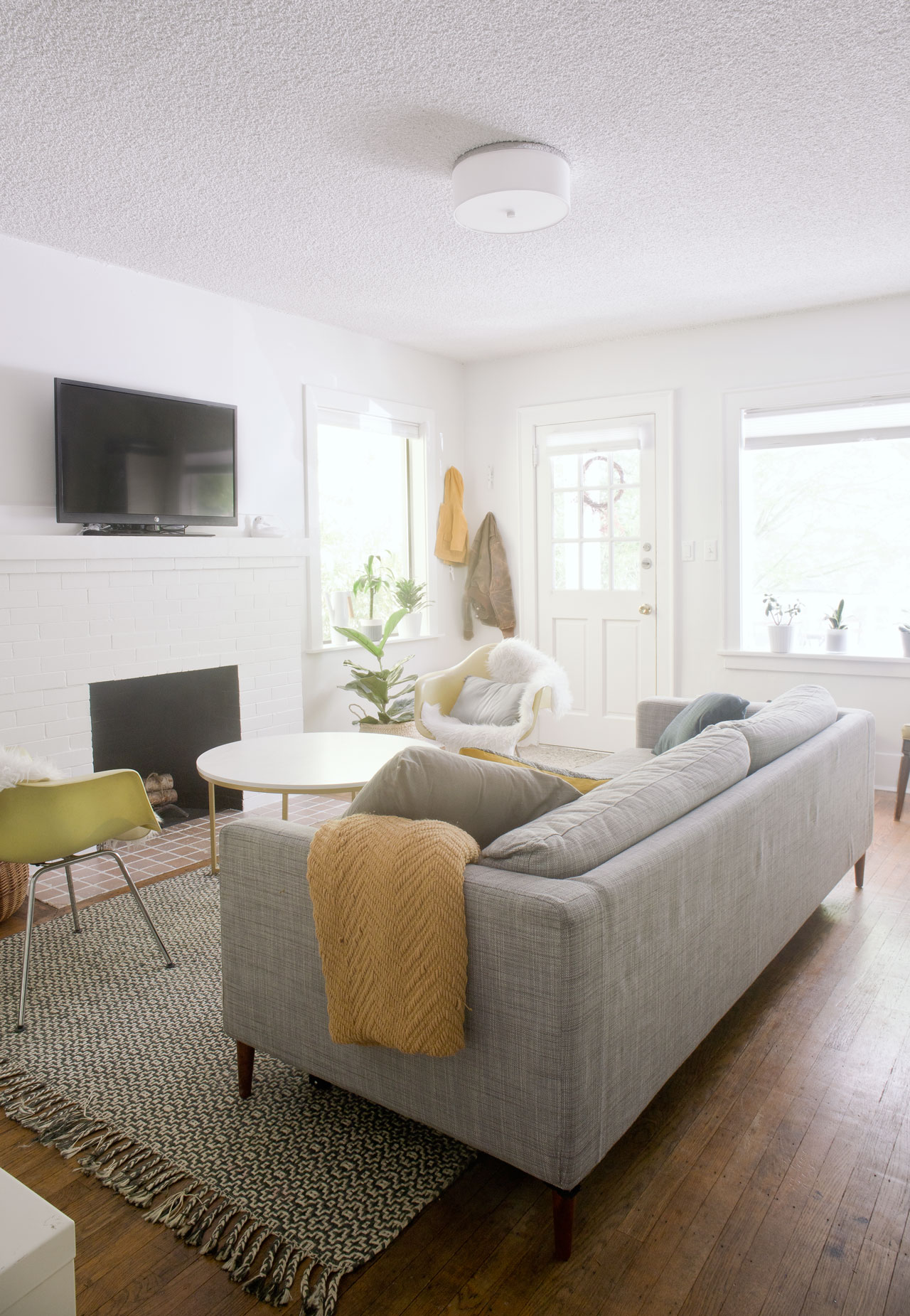 And then the TV went back above the fireplace. I’m still not in love with this, but our original plan was to install a projector in the living room. However, we are postponing that due to cost and thus the TV re-entered. We literally only use the TV when we have people over to watch a movie, so the jury is still out on whether this was a worthwhile swap.