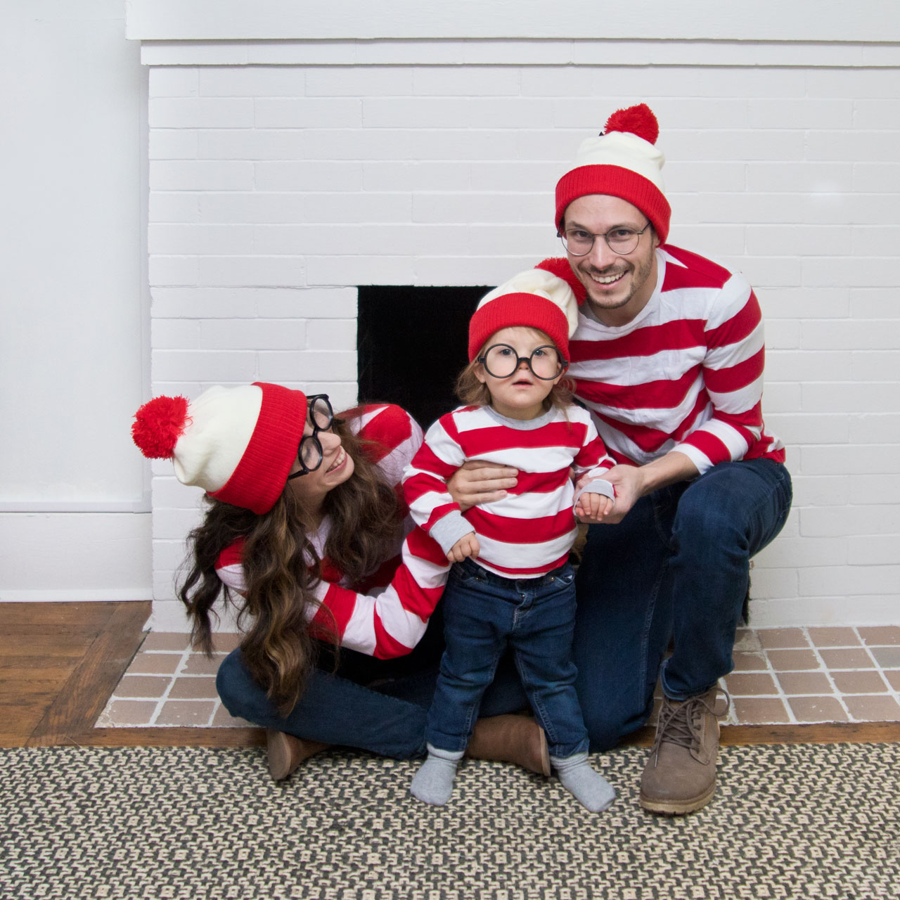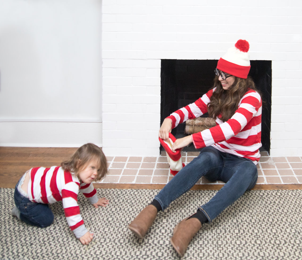 Last year I had grand plans for Halloween. We were going to be a family of fruits. Florence had a strawberry costume and I was going to make myself a lemon costume. Joey was going to be a watermelon. But somehow in the daze of being new parents, we lost track of time and before we knew it, it was Halloween Eve and only Florence had a costume. So I let it go, but this year, I was determined to not make the same mistake. So a few months ago, I started my family costume search. I wanted something easy and inexpensive. That’s how I landed on Where’s Waldo costumes.