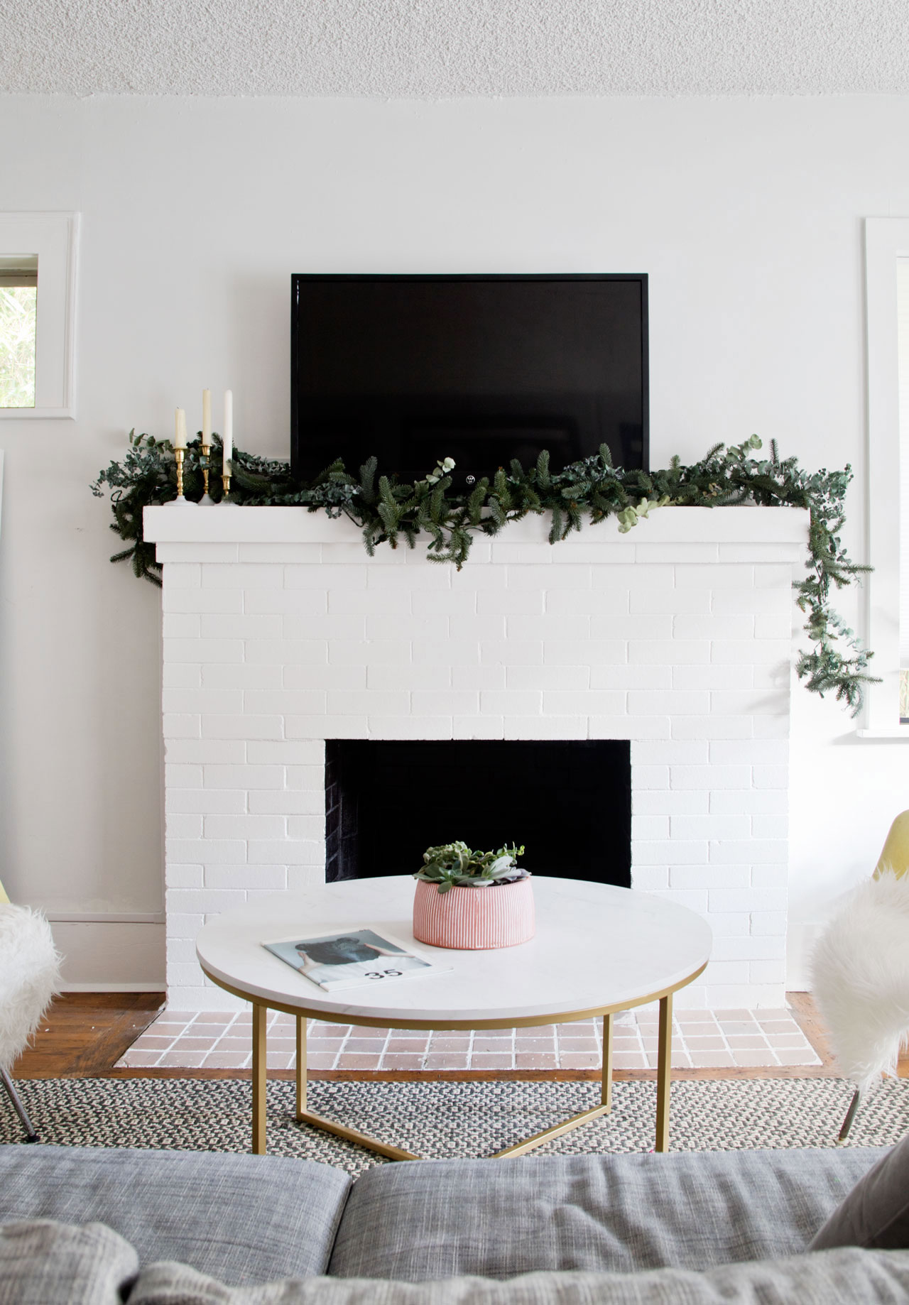 The garland was definitely on the more artificial side, which I didn’t love, so I added in eucalyptus leaves sporadically to give it some depth.ย I think that made a huge difference. I also placed it asymmetrical to add some additional visual interest. Now if only I didn’t have that bulky TV junking up the mantle.ย I’m keeping an eye out for a Black Friday deal on a Samsung Frame TV because that is the only TV that I think will look semi-decent. Keep your fingers crossed for me!