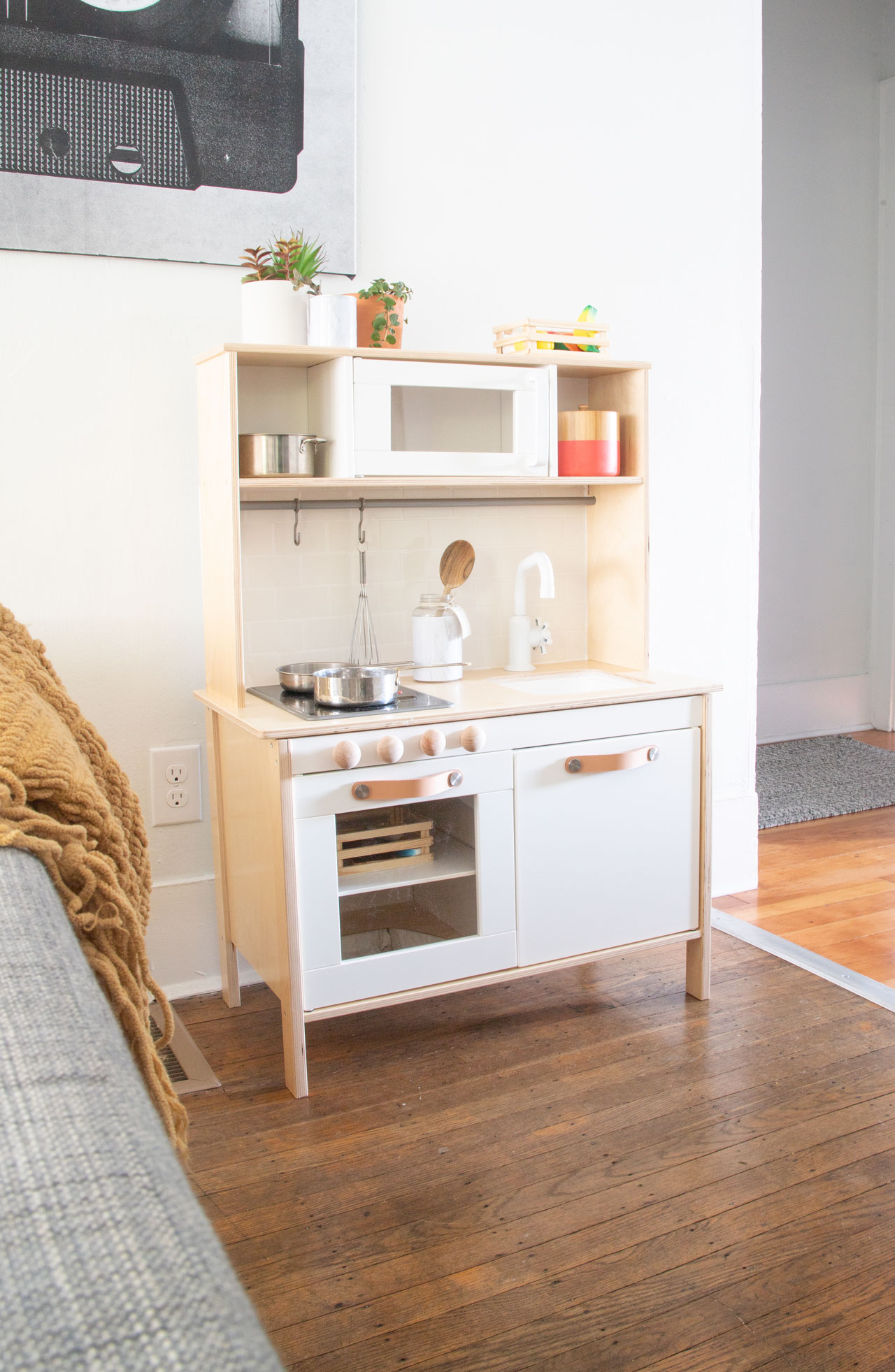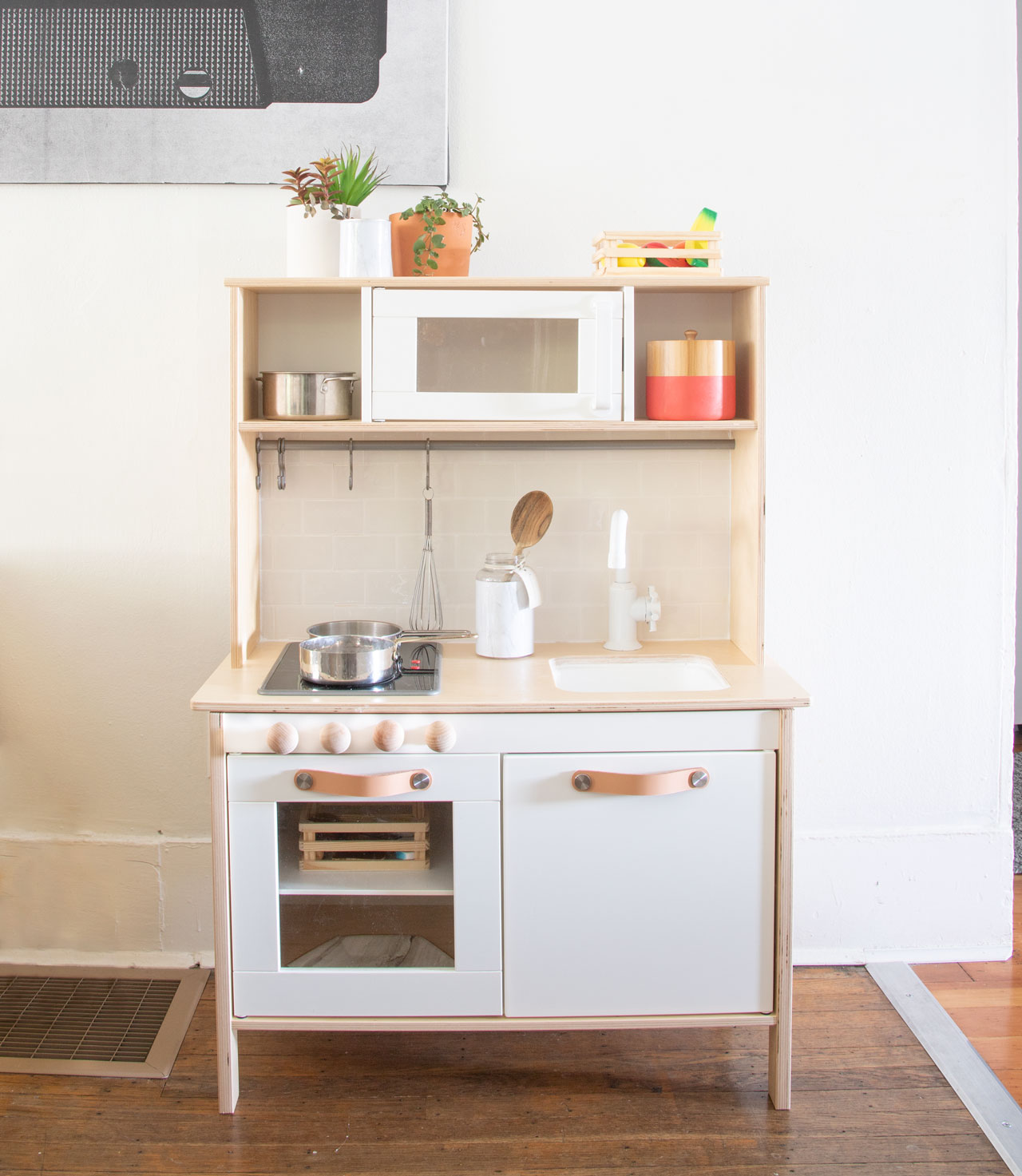 I started with the Duktig Ikea Play Kitchen, which is $89. It’s actually not that bad by itself, but it needed a little personality.