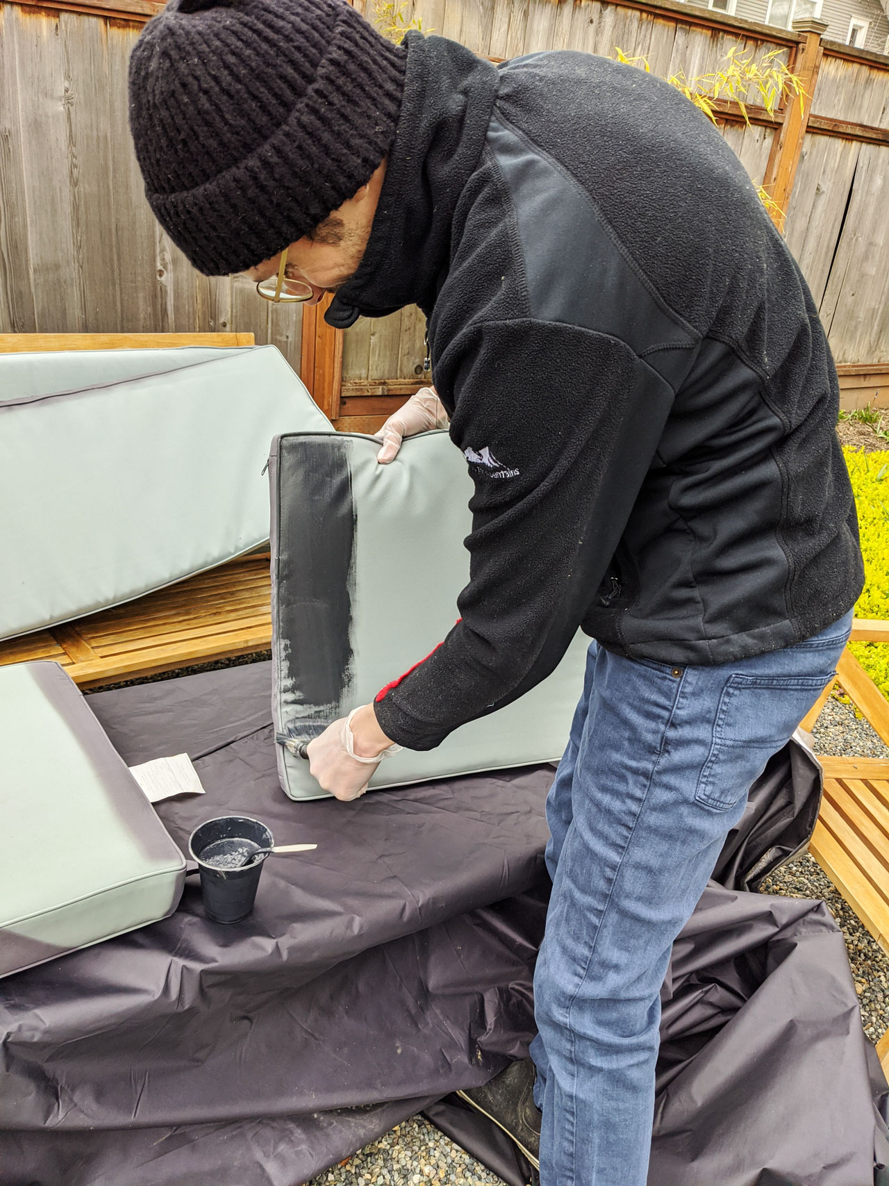 After two coats, our cushions look brand new!