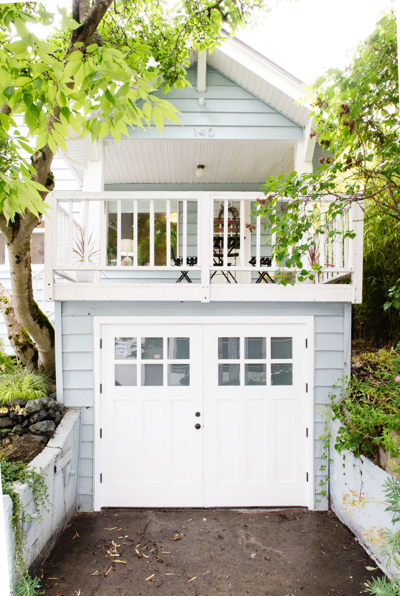 Swoon worthy, for sure! And I’m a sucker for historical accuracy, so I got this notion that we had to replace our overhang garage door. A strange thing about Seattle is that nobody parks their car in their garage. Literally nobody… so having carriage doors wasn’t that ridiculous of an idea, since we never parked in the garage to start with. I searched high and low for the perfect doors. Always on the lookout for a deal, I found some at a salvage store for $800. I was super pumped and bought them without really considering logistics. So we brought them home and they sat in our garage for a year or so until I found someone to install them. But turns out they had lead paint and totally didn’t fit our garage opening… whoops. And the cost to install them was more expensive than buying new doors from a local store (Frank Lumber the Door Store). So I swallowed the cost and commissioned new doors. All in, this was a very expensive project (like probably around $10K), which is very much against my normal ethos; however, I was so determined to improve our curb appeal that I honestly didn’t care. And I’m happy that I didn’t cheap out. They look amazing!!