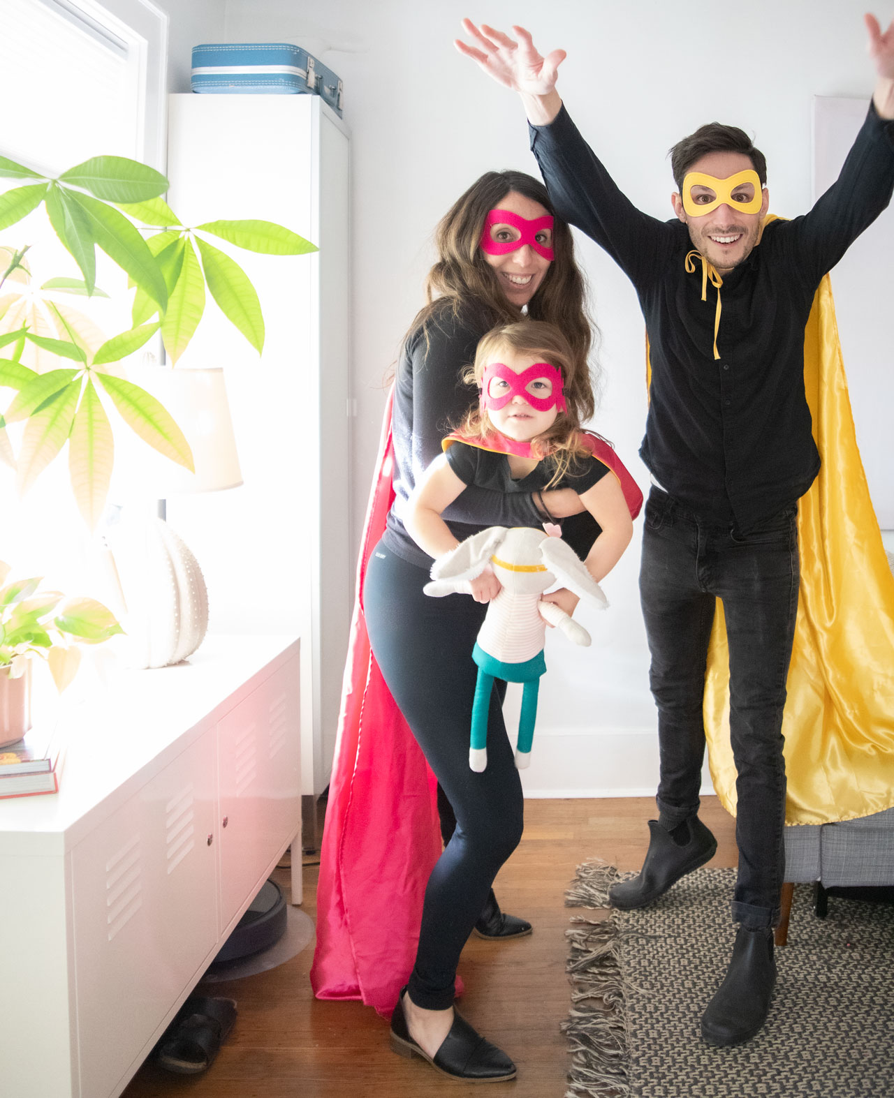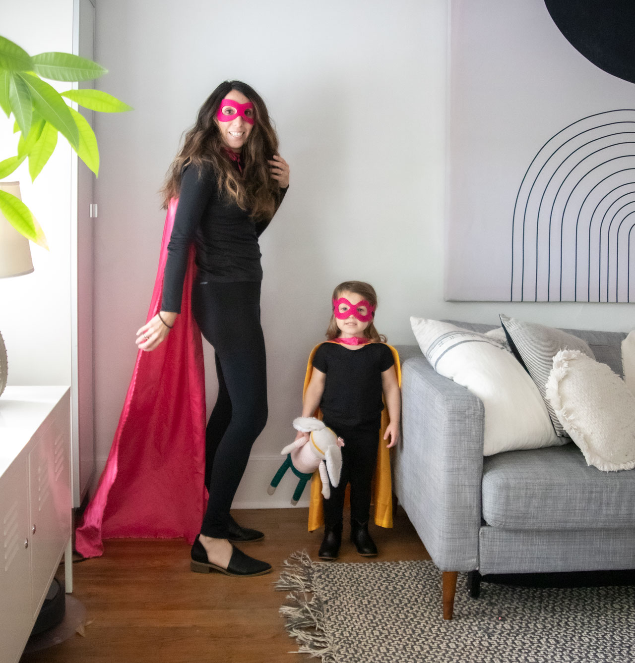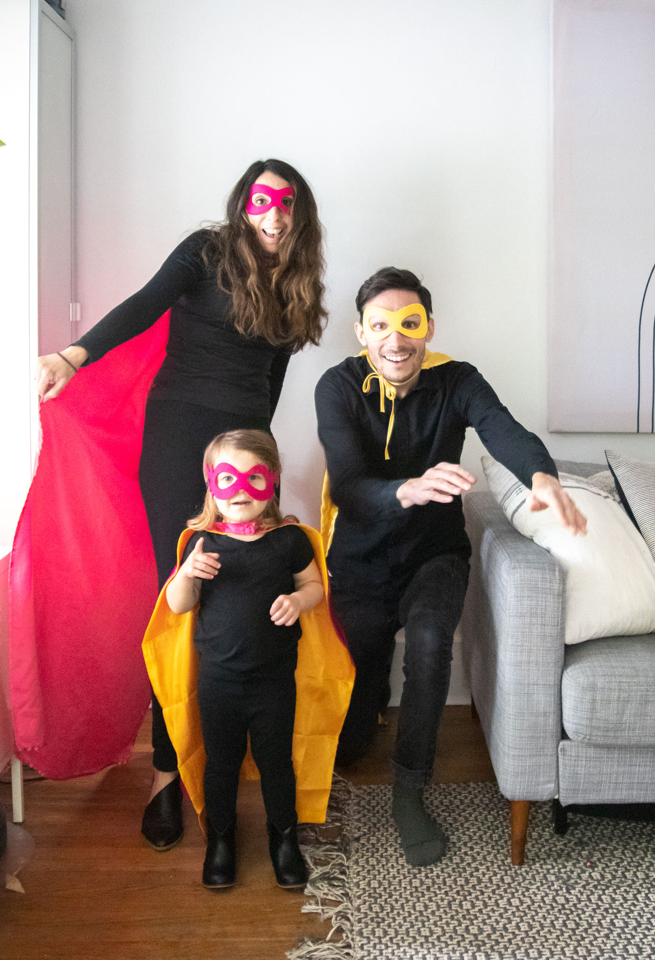 This is definitely going to be one of the weirdest Halloweens I’ve ever experienced. We won’t go trick or treating, which is a major bummer since Florence is finally at the age where I think she would be into it. But I’m trying not to be the Halloween Grinch, so we are still dressing, up. But in the most low-key, low effort way possible, which basically just means I bought our costumes on Amazon. And you know what, they aren’t all that bad. I present to you, the Super Ekloffs.