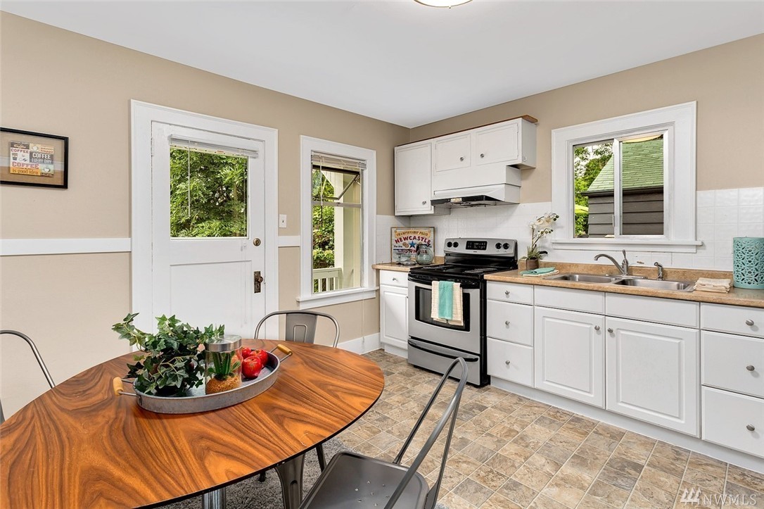 I am so, so, so excited to share the biggest renovation we have undertaken in our house yet… the kitchen. This room has always been a sore thumb in our home. It had terrible brown vinyl floors, a staircase tucked in the corner (using up valuable space), cheap faux tile backsplash, no dishwater, the list goes on.ย Here is what it looked like in the listing photos.