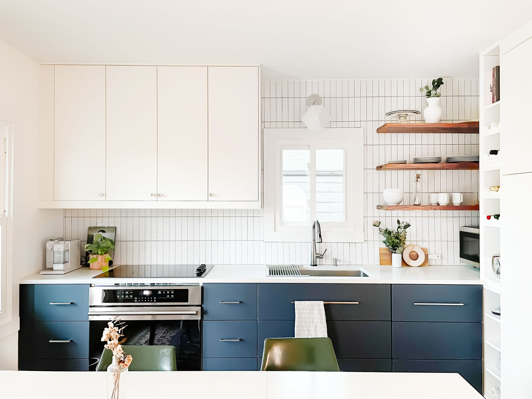 We went a dual tone for the cabinets, which I love for the visual interest. For the backsplash, we decided to stack the tiles vertically. That was Joey’s preferred layout, which I initially questioned, but can now see was the right decision.