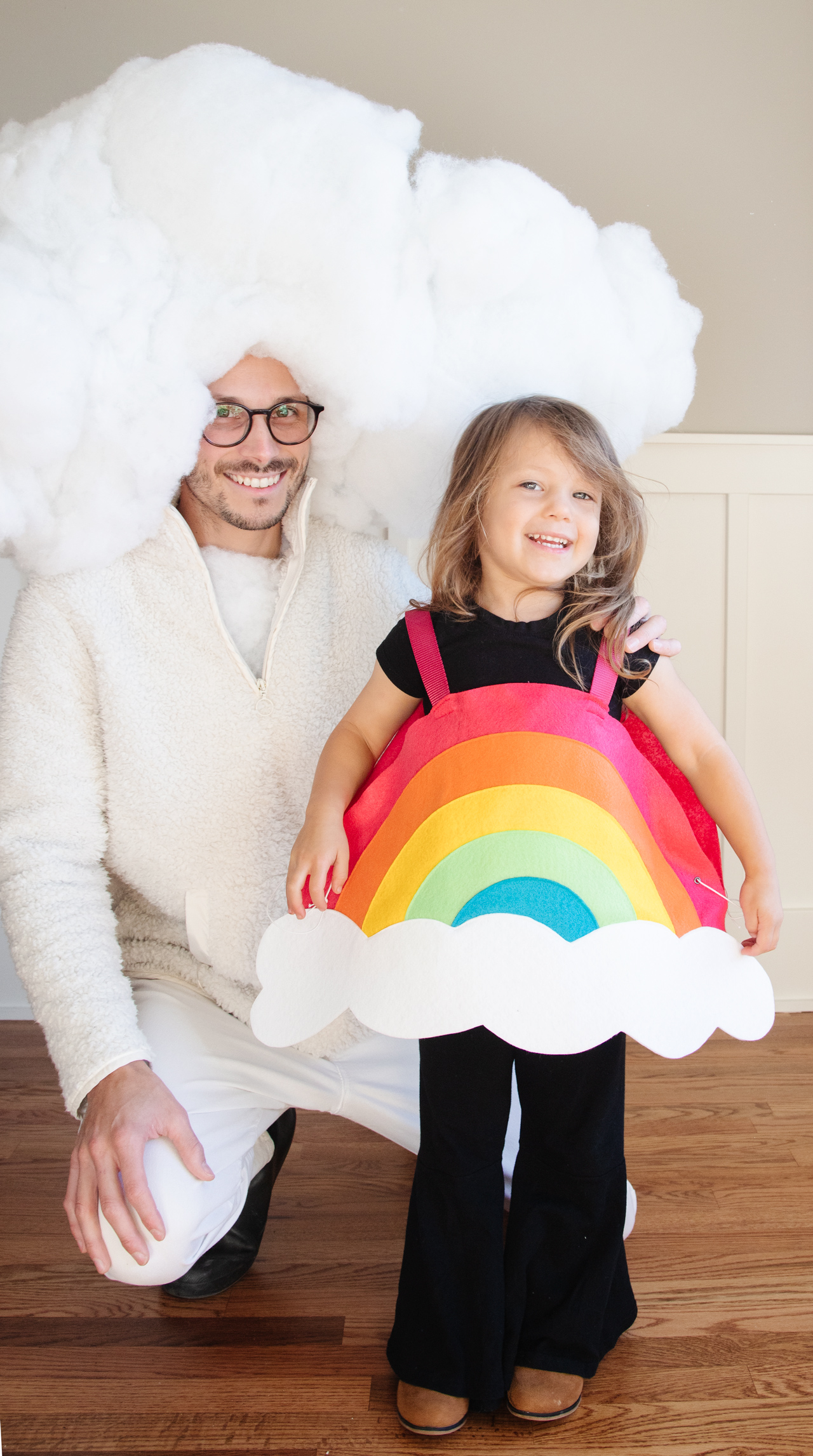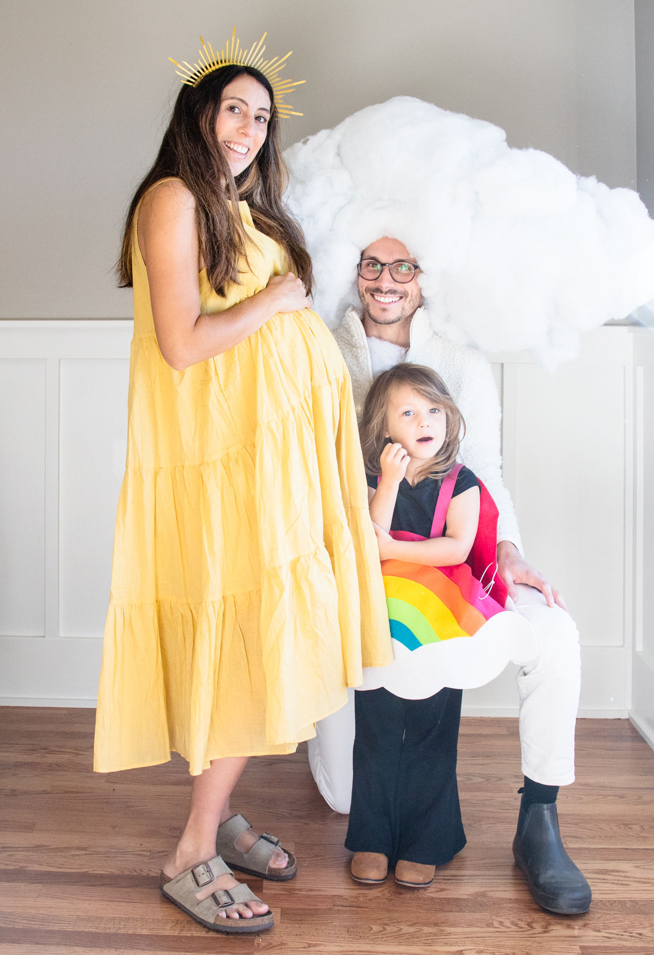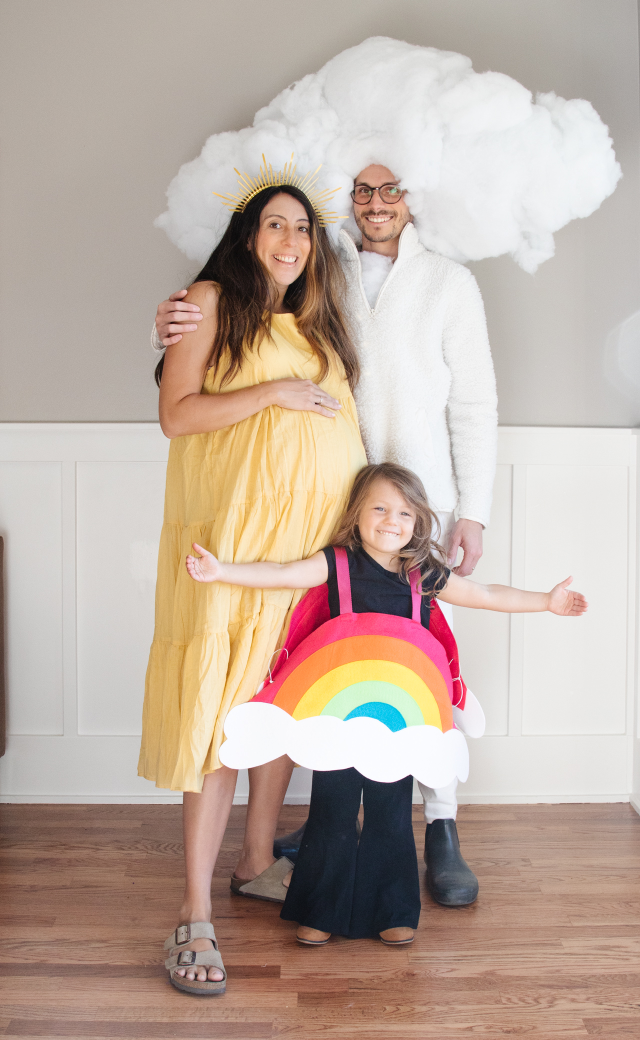 This year, I wanted something super easy for Halloween. Something that nodded to the fact that I’m extremely pregnant, while also being themed. After some pinterest deep dives, I landed on the idea of a sun, rainbow and cloud!