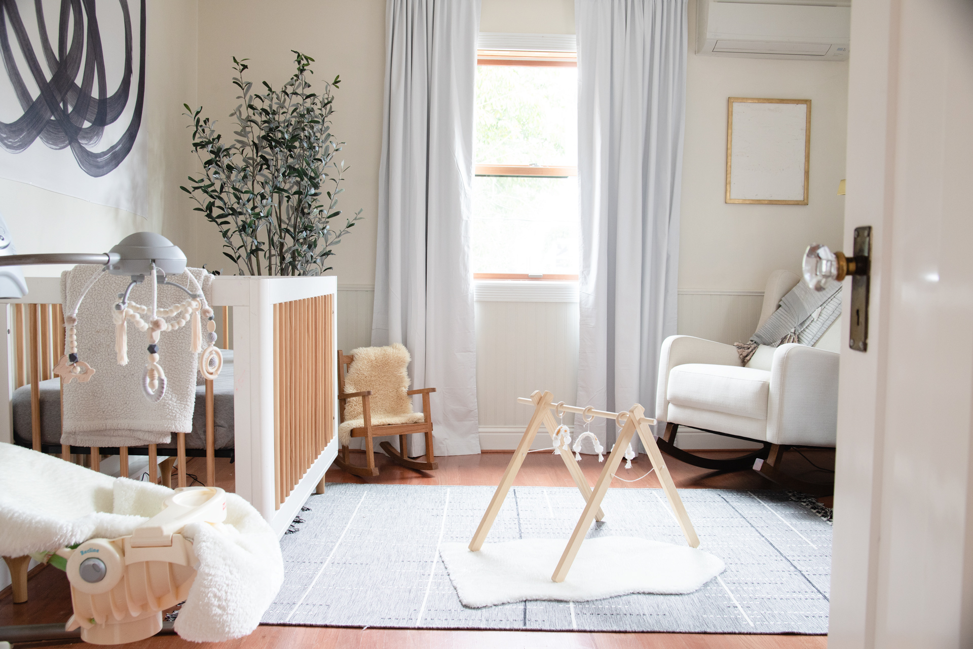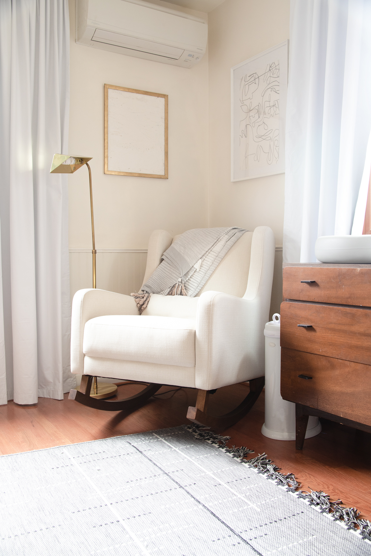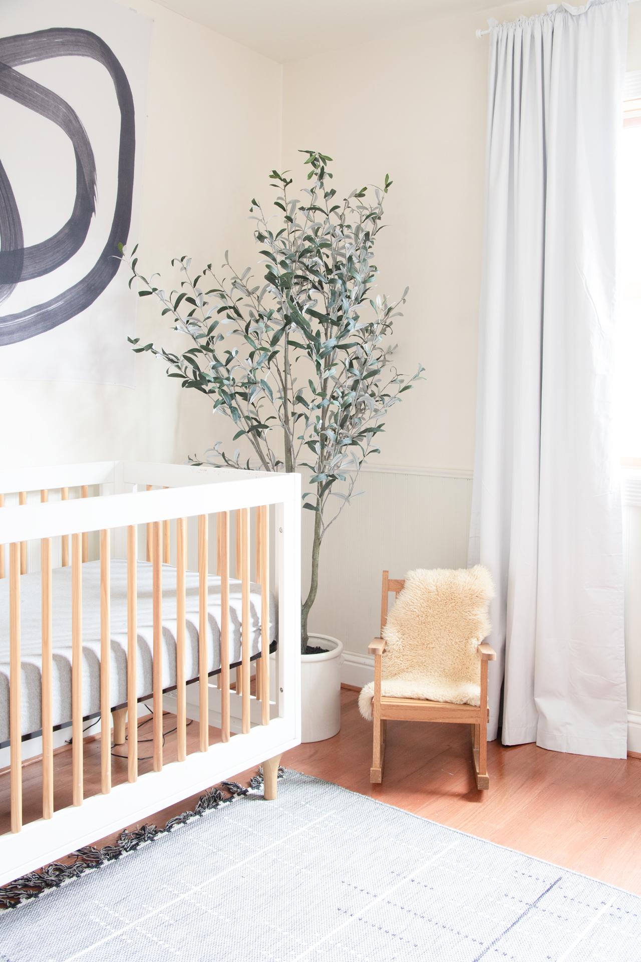 I’m reusing a lot of stuff from Florence’s nursery, but I did splurge on a few things: I got a new Babyletto Rocker, a fantastic faux olive tree (Threshold Studio McGee), and a tapestry from Society 6.