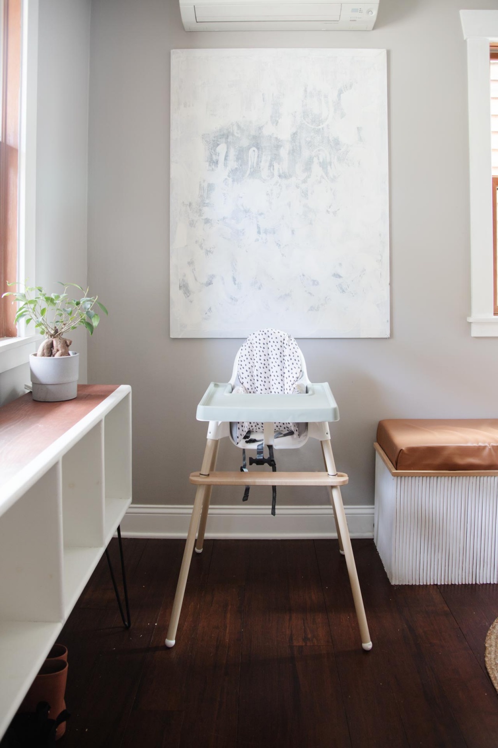 When Florence was a baby, we bought a basic Ikea Antilop High Chair and loved it. It’s super easy to clean and is so inexpensive. The only problem is that it doesn’t look super high end. I didn’t mind at the time, but I wanted something a little more stylish for Nico. But, as I looked at different options, I kept coming back to the Antilop chair, so I decided to use it again, but add some pizzaz with a super easy hack. I love a good Ikea Hack. Look at it now, beautiful, right?