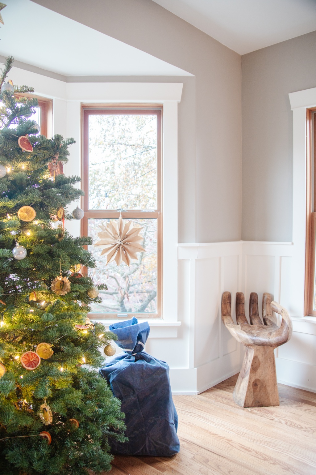 This year we are doing a very low key Christmas. We bought a tree at a lot right by our house, I made an orange and grapefruit garland, and we did some paper bag snowflakes. I also pulled out an old garland that I bought at Goodwill a few years ago and draped it on the mantle. To give it some depth, I put in some eucalyptus branches and a few extra dried oranges. That’s about the extent of my decorating so far, but I’m pretty happy with how everything turned out.